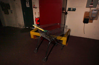 The labels in this room suggest that Dunelm used this for storage, but the red and green colour scheme suggests that this room was also used during the laser quest days.